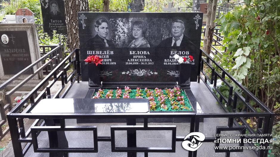Требовалось нанести гравировку портрета между двумя существующими портретами. Собрать цветник, установить лавочку, покрасить ограду и отремонтировать калитку, уложить пол и посадить цветы. В процессе начального общения договорились установить две вазы для цветов.
